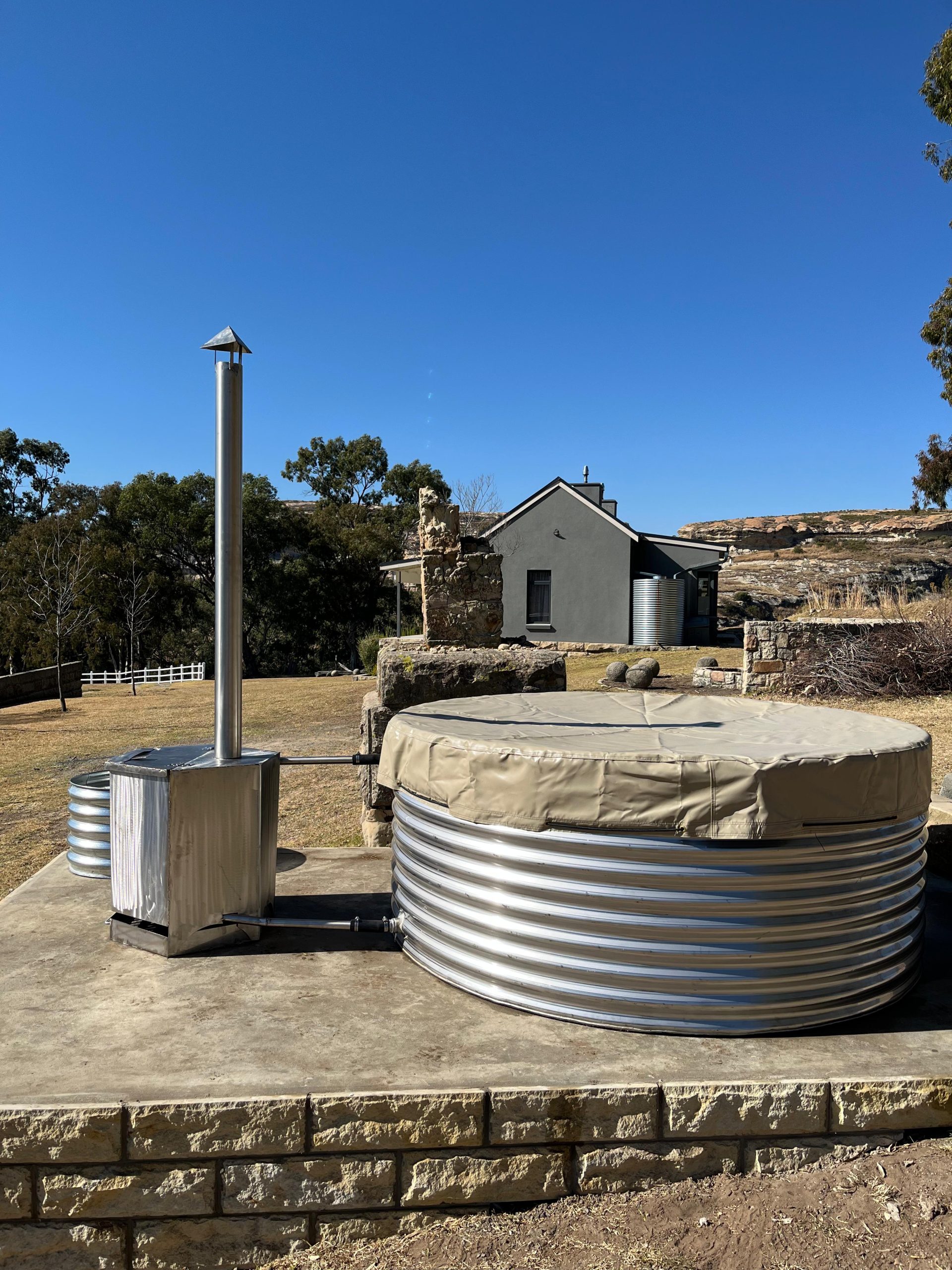 Our corrugated steel tubs are left in their raw galvanised corrugated steel form and can withstand the heat from either a stainless steel or aluminum wood fired stove.